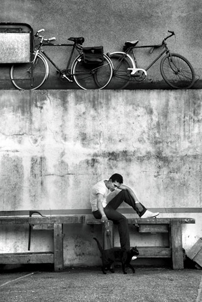 Approche photographique en noir et blanc portant sur les relations affectives à vélo à travers plusieurs pays.