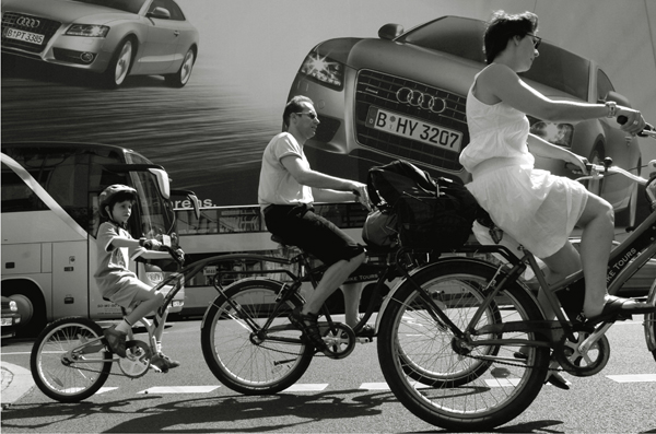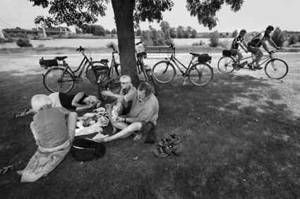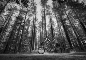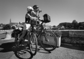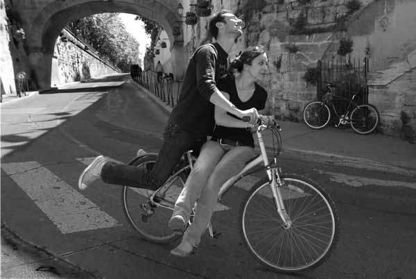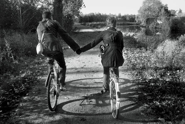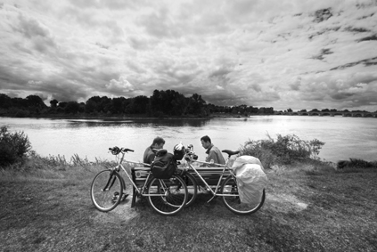 Approche photographique en noir et blanc portant sur les relations affectives à vélo à travers plusieurs pays.