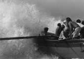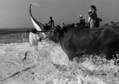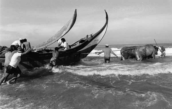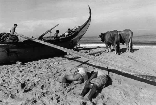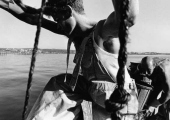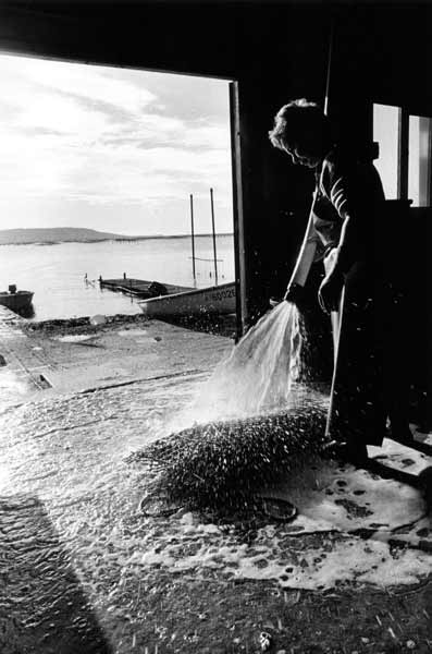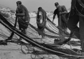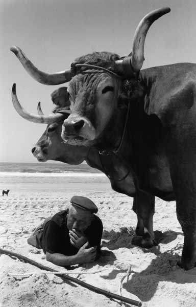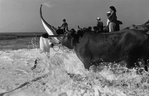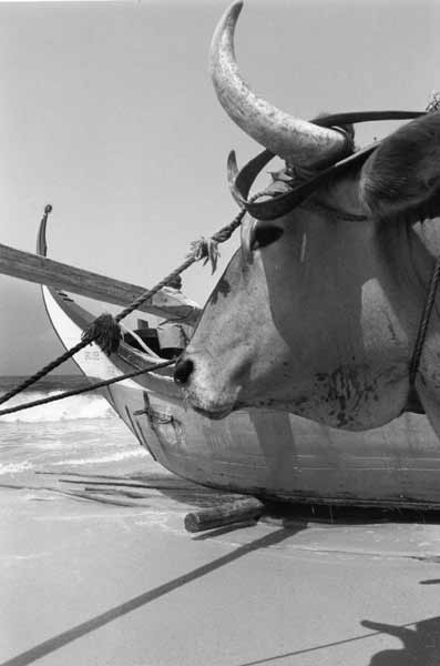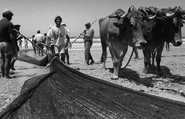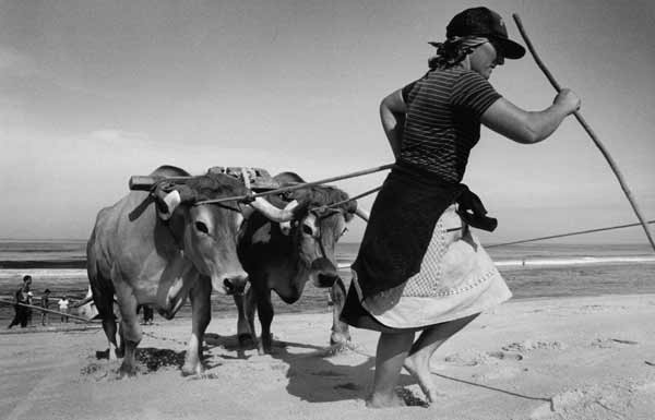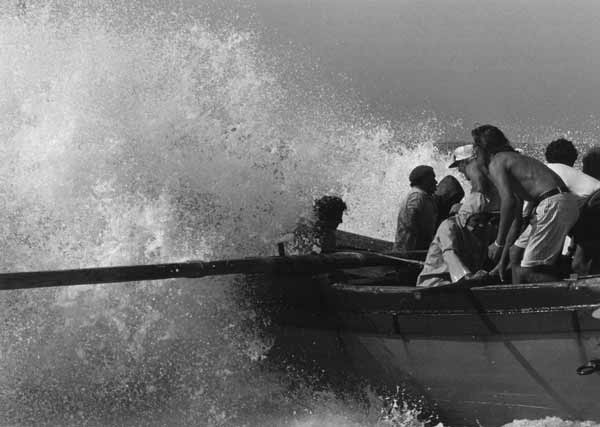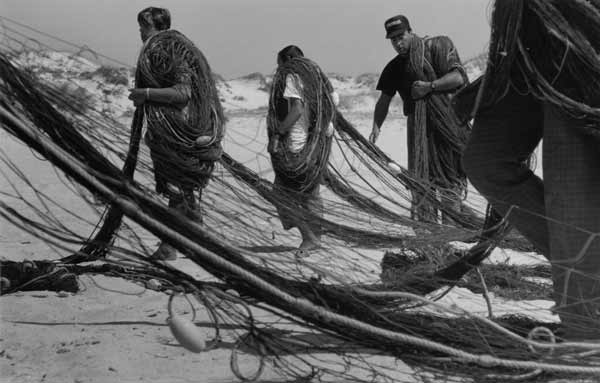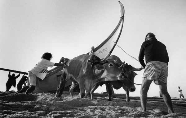 «Les images témoignent des formes de pêche les plus traditionnelles, aujourd'hui disparues. Les barques prennent la douceur de formes lunaires et entraînées par des rames très lourdes auxquelles trois ou quatre hommes sont arc-boutés, elles jettent en mer un énorme filet qui se déploie sur près de deux kilomètres. Des bœufs aident les pêcheurs à mettre à l'eau ces barques lunes dans des moments intenses ou l'homme affronte la mer».