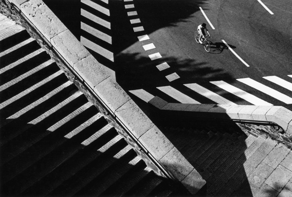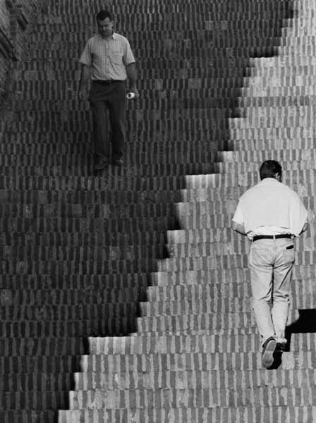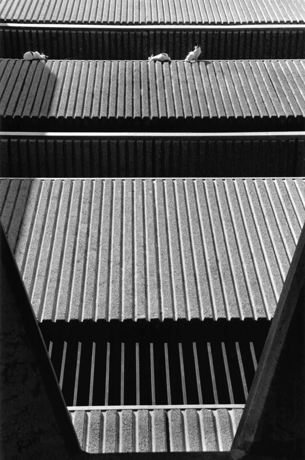 Véritable gageure de vouloir photographier les marches dans les villes, mais dès la première image on perçoit qu'au-delà de la recherche graphique les symboles sont nombreux. Les marches ont énormément d'importance, elles nous élèvent, nous conduisent, elles prennent la dimension du rêve et de l'inquiétude. Portant exclusivement son étude sur les marches de la cité, le photographe recompose l'espace urbain à sa façon.